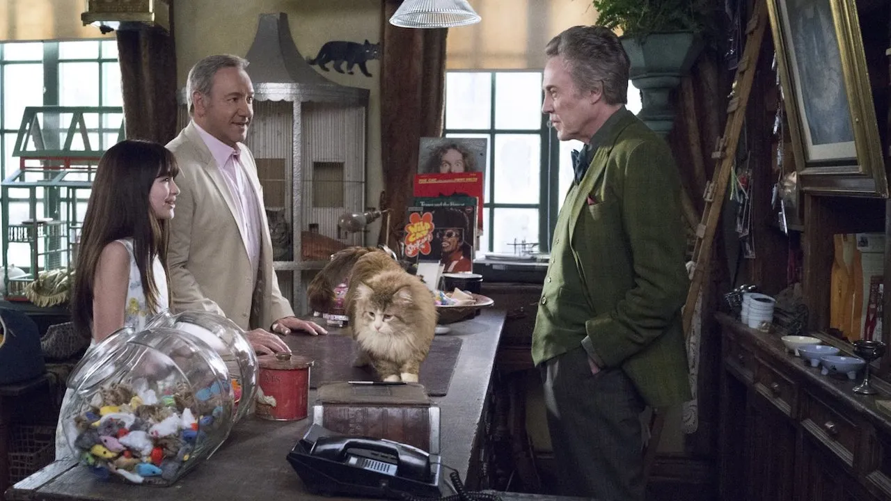A stuffy billionaire businessman finds himself trapped inside the body of his family's cat. Tom Brand (Kevin Spacey) is a daredevil billionaire at the top of his game. His eponymous company FireBrand is nearing completion on its greatest achievement to date - the tallest skyscraper in the northern hemisphere. But Tom's workaholic lifestyle has disconnected him from his family, particularly his beautiful wife Lara (Jennifer Garner) and his adoring daughter Rebecca (Malina Weissman). Rebecca's 11th birthday is here, and she wants the gift she wants every year, a cat. Tom hates cats, but he is without a gift and time is running out. His GPS directs him to a mystical pet store brimming with odd and exotic cats - where the store's eccentric owner- Felix Perkins (Christopher Walken), presents him with a majestic tomcat, named Mr. Fuzzypants. En route to present his daughter with her dream pet, a bizarre turn of events finds Tom trapped inside the body of Mr. Fuzzypants. Adopted by his own family, he begins to experience what life is truly like for the family pet, and as a cat.