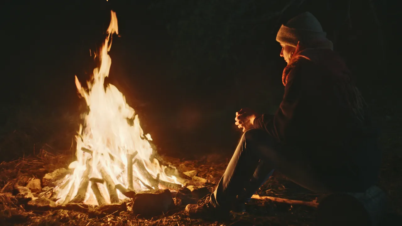 Au fil d’une nuit autour d’un feu, deux êtres retirent leurs masques et font émerger une vérité intime et douloureuse.